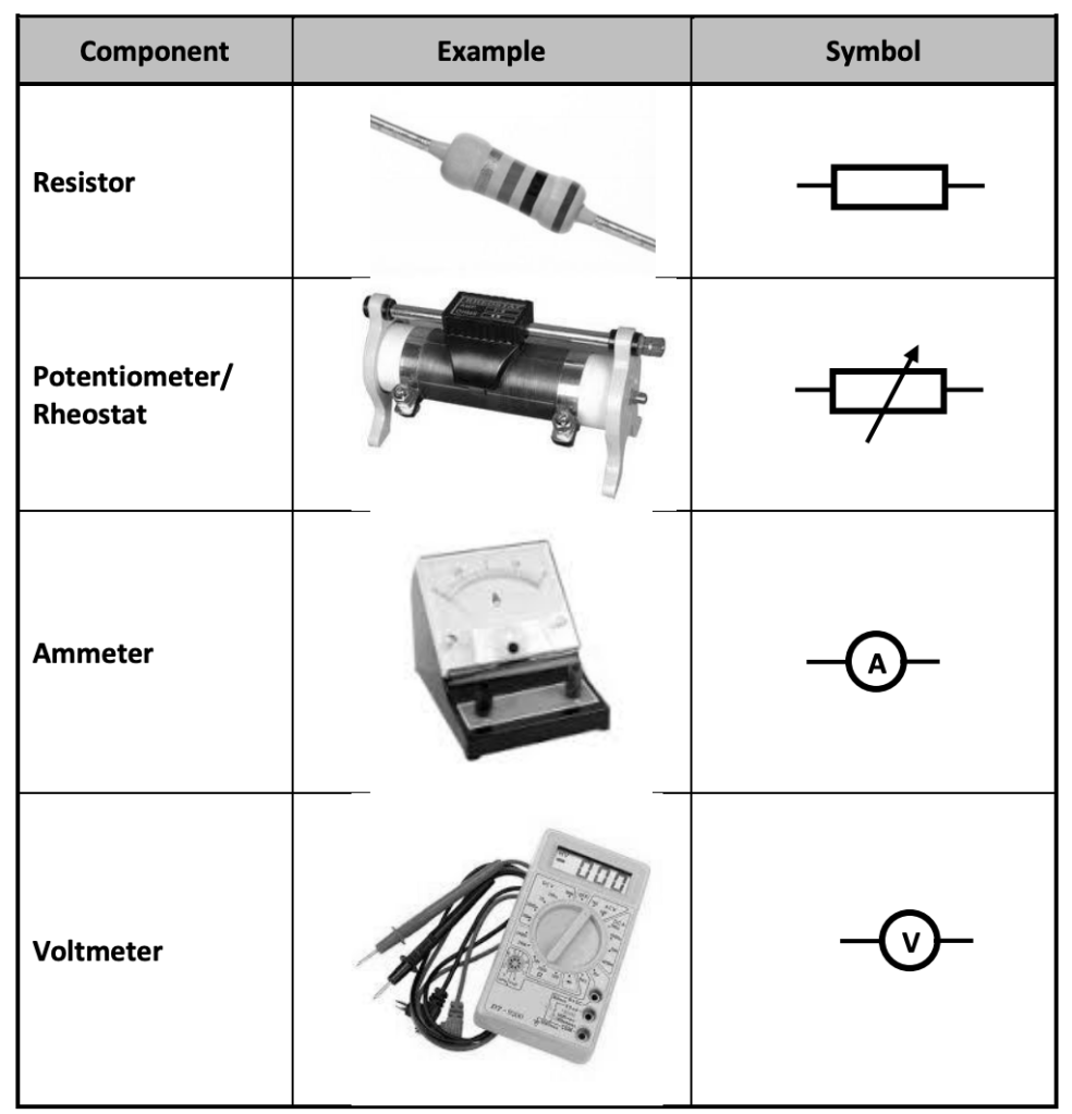 7.1 The following table gives a range of electric circuit components and their symbols. Study