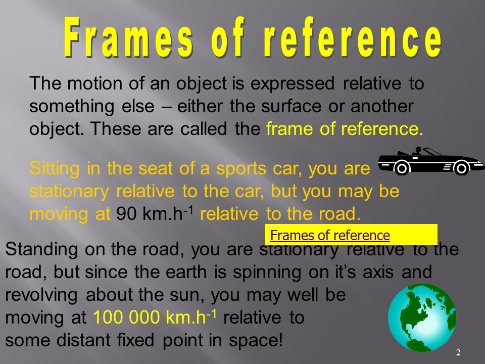 Imagine you’re on a train moving at a constant speed. From your perspective inside the train, you might see objects inside the train as stationary or moving at the same speed as the train. This is your frame of reference. However, to an observer standing outside the train, those same objects appear to be moving at the speed of the train, relative to the ground. This is their frame of reference.