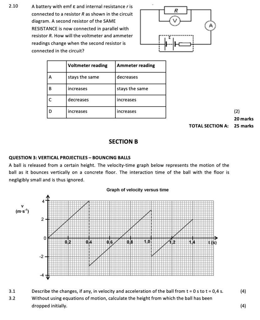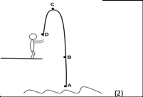 2.1 A person dives from a high platform into a pool. At which ONE of the positions A, B, C or D will the magnitude of his momentum be a maximum?